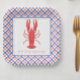 Watercolor Red & Blue Plaid Lobster Paper Plates