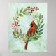 Watercolor Red Cardinal Bird Wreath Christmas Poster
