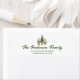 If you are looking for a simple minimalist beautiful and easy editable Christmas return address . This one is perfect for you. And as you see the design features a three watercolor hand made and drawn Christmas trees with ornaments decoration in red and gold and white. With green typography of your family name. And your return address under it.