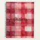 Fun red watercolor plaid planner featuring a customizable name, perfect to make back to school or starting college memorable.