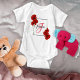 Wrap your little one in the beauty of nature with this enchanting design featuring vibrant red poppies. A delicate black geometric frame surrounds a personalized name and large initial monogram, creating a modern yet timeless botanical look. The rich red hues of the watercolor flowers contrast beautifully against the crisp white background, making it an ideal choice for a spring or summer baby, a floral-themed baby shower gift, or a stylish everyday outfit for a baby girl. The combination of elegant script typography and bold floral art creates a sophisticated aesthetic that stands out.