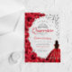 Red silver watercolor floral Quinceanera celebration invitation. Features brunette girl in ball gown dress, script font, silver butterflies, roses and tiara. Perfect for an elegant princess style glam celebration. Personalize with your own details. Stylish transparent or frosted acrylic invitations.