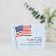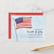 This design features a watercolor fourth of July cute, with summer red white and blue, American flag patriotic independence day, for a backyard outdoor picnic BBQ birthday, a patriotic independence day event, a cute whimsical fun celebration, a festive summer celebrate party, a budget-friendly postcard template, a summer fourth of July invitations, a watercolor red white and blue