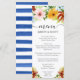 This vibrant wedding menu features a lively blend of red, blue, and yellow florals arranged at the top and bottom, creating a cheerful botanical frame for your reception meal details. The elegant script title paired with clean serif text keeps the layout refined and easy to read, while the colourful floral palette adds warmth and personality to every place setting. Perfect for spring and summer weddings, outdoor celebrations, rustic garden venues, or couples who love bright, joyful stationery, this menu card coordinates beautifully with a mixed‑floral wedding suite.