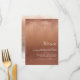 This modern wedding reception menu is slightly informal with warm, personal feel and features an abstract, watercolor design resembling reflections on water. This example has a gradient color palette from pale peach to dark terra cotta. Personalize with the bride and groom's initials, wedding date and details using the provided template. Search ID774 to see complete matching set and additional color options.