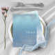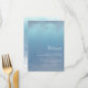 This modern wedding reception menu is slightly informal with warm, personal feel and features an abstract, watercolor design resembling reflections on water. This example has a gradient color palette from soft teal to trendy dusty blue. Personalize with the bride and groom's initials, wedding date and details using the provided template. Search ID774 to see complete matching set and additional color options.
