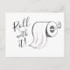 Watercolor toilet paper roll Postponed Roll with it Postcard. The stylish wedding change the date template with modern calligraphy. Design features a modern style script text layout and watercolor toilet paper roll. To make advanced changes, please select "Click to customize further" option under Personalize this template.