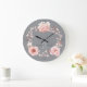 Watercolor Rose Wreath Personalized | Gray Large Clock