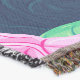 A quality printed throw has its advantages. This is a much finer weave throw than its loopier cousins, and though lighter, it is worth the investment for custom room accessorizing. The back is much prettier than the typical brown, and the fringe on the long sides very vivid, the selvage nicely done. Before photographing, I washed the throw in cold water, delicate, with a thicker woven throw the same size. On tumble dry low, this throw was dry in half the time as the other. This is a very practical quality if you use throws for furniture covers or to wrap up in frequently. The sleekness of the fabric makes it a great layer for accenting or protecting without the feeling of sitting on too much stuff. Perfect for napping or when you feel a light chill coming on. The color printing is beautiful and on this fabric, matched the design and color of my Photoshop image. This is an advantage for blending room fabrics and colors. The fringe on the short sides prints the colors from the design image and therefore varies from the side fringe. I streaked a white fractal line through the plaid pattern to give the illusion of weaving. This printed as crisp as an illusory thread, and put some white in the short side fringe, showing another advantage of print vs loomed- for artistic purposes, line lines, detail, and color integrity can be planned and preserved. My loomed throws have color limitations and more of a needlepoint texture. Print throws reproduce an exact image. The throw felt a little stiff straight out of the package, but this went away in the first delicate wash. Of course I searched the wash water for ink or bleeding and there was none.