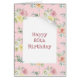 Old-fashioned watercolor rose bouquet on pink blush background for 80th birthday.