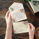 Elegant all in one tear-away wedding invitation featuring a romantic design with watercolor roses in light pastel colors with blush pink.