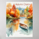 Watercolor Rustic Autumn Lake with Rowboat & Trees Poster