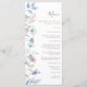 Step into a gorgeous celebration of love and nature with our Watercolor Rustic Boho Wedding Menu. This stunning and unique menu infuses a touch of boho chic with beautifully hand-painted watercolor wildflowers in gentle hues of pale and dusty blues complimented by earthy tans. Our easy-to-customize template allows you to infuse your personal voice making it truly your own. This beautiful menu is perfect for romantic, elegant weddings any time of the year! (Dark tan text.)