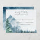 Theme Parties' watercolor mountains rustic wedding RSVP card design features watercolor trees and mountains set on a dusty blue watercolor background. The typography pairs traditional lettering with modern hand-lettered text. #WeddingInvitations #DustyBlueWedding #WeddingInvites