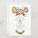 Trendy wild woodland couple's shower invitation featuring hand painted watercolor bouquets with forest berries - blueberry, blackberries and sprigs, pine cones, ferns, feathers and moose horns.