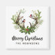 Christmas magnet featuring reindeer antlers, bullfinches, holly and pine customizable to your specifics.