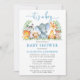 Watercolor Safari Animals Blue Script Boy Shower Invitation