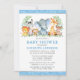 Watercolor Safari Animals Shower Blue Glitter Invitation