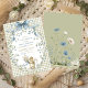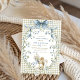 Charming watercolor baby squirrel with blue bow on soft sage green gingham background, framed by delicate forget-me-not florals and leafy wreath. Perfect gender-neutral invitation for a whimsical woodland or cottagecore baby shower. Fully customizable – edit text, colors & more!