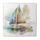 This beautiful ceramic tile features a watercolor sailboat sailing on a calm ocean. The soft colors and whimsical style create a sense of peace and tranquility. Perfect for adding a touch of nautical charm to any room in your home. Perfect for any lover of the sea.