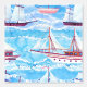 Watercolor sailing ships pattern on blue waved background.Travel cruise pattern with white sailing yacht in row | © and ® Bigstock® - All Rights Reserved.