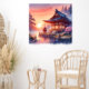 Watercolor Sakura Japanese Temple in Sunset Poster