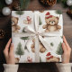 Watercolor Santa Teddy Bear & Pine Trees Christmas Wrapping Paper