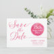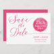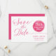 These simple and elegant save the date invitations feature a pretty script with a watercolor fill in hot pink. Customize the back with more information.