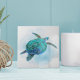 This ocean themed ceramic tile features a cute aqua blue sea turtle swimming on a splash of watercolor ocean wave.