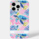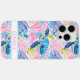 Customize this colorful watercolor sea turtles in pink and blue iPhone 15 pro max case with your your name in a trendy modern CAP font in pink on white. It's so modern and trendy!