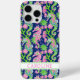 Customize this colorful navy blue, kelly green, and pink watercolor seahorses iPhone 15 pro max case with your your name in a trendy modern CAP font in pink on white. It's so modern and trendy!