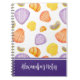 Feel inspired to write your fabulous ideas in this notebook featuring a colorful cover with a pattern of red, yellow, and violet seashells in watercolor.