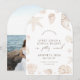 Set the tone for your celebration with this arch-shaped wedding save the date, featuring soft watercolor seashells and delicate pearls. The gentle curves and coastal details create a romantic, effortless feel that’s perfect for couples dreaming of a seaside or destination wedding. The back includes space for a favorite photo, adding a personal touch your guests will love. A beautiful way to announce your day with warmth, elegance, and coastal charm.