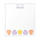 Jot down your list on this compact size notepad featuring colorful red, yellow, and violet seashells in watercolor, evoking a beach combing trip. Personalize it by adding your name and header using the available fonts.