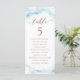 Help your guests find their table with this gorgeous seating plan cards with guests names. Elegant and delicate watercolor stains encasing card in a blend of blue and dusty blue hues. Double sided in the case you would like to hang them and have guests on both front and back look for their names. Gold details in text and dainty ink speckles. Use of modern hand written calligraphy details.