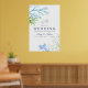 Trendy navy and white ocean theme beach wedding welcome poster featuring sea ferns, seaweed and starfish designed to be quickly and easily customized to your event specifics.