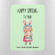 This is a light green Happy Spring flexible magnet decorated with a whimsical easter bunny holding a decorative egg, you can send as a secret buddy greeting. Easily change the text to make it yours using the Template provided. You can change BUDDY to BUNNY. Water and stain resistant. Choose 3" x 4" (shown) or 4" x 6". See "About This Product" at side for more information.