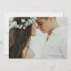 Romantic wedding thank you card printed with two of your wedding photos, a smaller one on one side and a larger on the other side. Your wedding date written in a neat font with your names in a signature script on turquoise watercolor with room to write a personal note by hand.