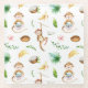 Watercolor tropical themed glass coaster features silly monkeys, bananas, coconuts and palm leaves on white background.