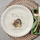 This design features fall autumn turkey bird leaves, botanical greenery fall foliage, fall festival harvest celebration, elegant rustic fall harvest party, elegant calligraphy script, watercolor pumpkins gourd greenery, botanical garden autumn happy harvest, simple classy typography, fall autumn gathering celebration, rustic autumn thanksgiving paper plate