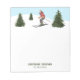 Stay organized in style with this watercolor ski-themed notepad, featuring Destei's original design of a woman skiing among fir trees under a snowy blue sky. The bottom includes two personalizable text areas for a name and job title, perfect for ski instructors, coaches or winter sports professionals. The subtle slope and skier design adds seasonal feel without overwhelming your notes, making it a practical and visually appealing accessory for home, lodge or the office.
