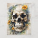 Watercolor Skull with Wildflowers Postcard