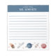 Space themed science teacher notepad with name template on a blue background. A cute personalized writing paper pad that is lined and features watercolor stars, satellite, planets, rocket ship, and meteor. This science themed notepad would make a thoughtful teacher appreciation gift or fun back to school stationery.