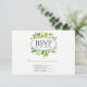 Trendy green and white spring foliage wedding RSVP cards customizable to your event specifics.