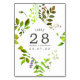 Trendy green and white autumn spring wedding table number cards customizable to your event specifics.