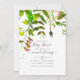 Trendy green and white spring foliage baby shower invitations with elegant handwriting typography customizable to your event specifics.