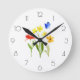 Bright primary colors for a sweet, fun, and simple clock with a touch of sophistication. Pretty watercolor flower stems give the effect of a bunch of wildflowers, with a darling, visiting butterfly.