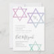 A modern, soft Bat Mitzvah invitation design by Stacey Meacham featuring ombre watercolor stars and a three initial monogram.