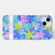 Customize this colorful watercolor starfish in blue, aqua, yellow and pink iPhone 15 plus case with your your name in a trendy modern CAP font in pink on white. It's so modern and trendy!