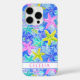 Customize this colorful watercolor starfish in blue, aqua, yellow and pink iPhone 16 pro case with your your name in a trendy modern CAP font in pink on white. It's so modern and trendy!